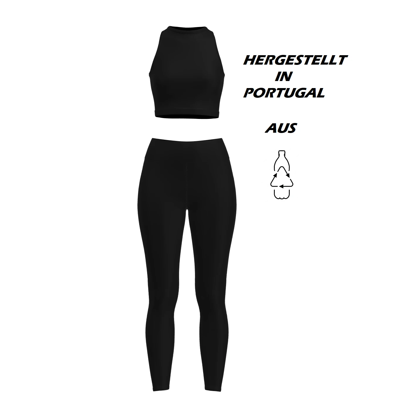 Unser Set besteht zu 84% aus recyceltem Polyester (das aus wiederverwerteten Kunststoffflaschen gewonnen wurde) und zu 16 % aus Elasthan.
